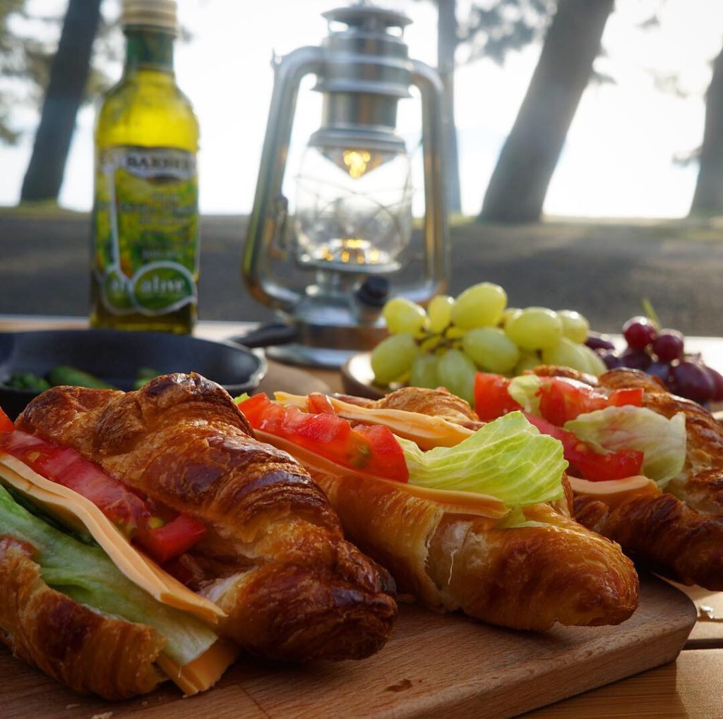 キャンプの朝食に、クロワッサン・サンド。 マイアミ浜オートキャンプ場にて。 -